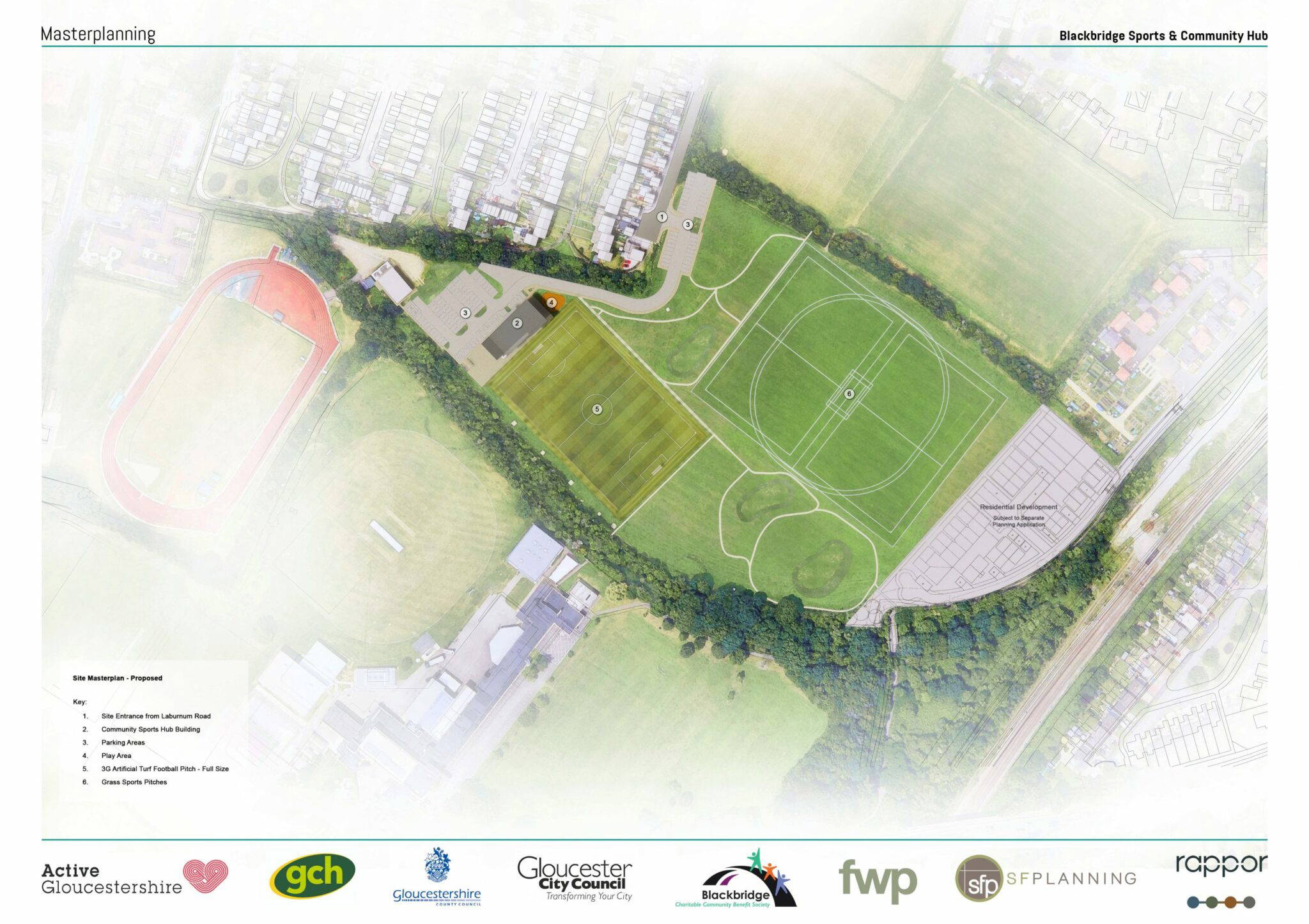 The playing fields at Blackbridge have been earmarked for housing and a community sports hub by Gloucester City Council. The sports hub is being taken forward by the Blackbridge Charitable Community Benefit Society in conjunction with the City Council, the County Council, Gloucester City Homes, Gloucester Athletic Club, the Football Foundation, Sport England and Active Gloucestershire.