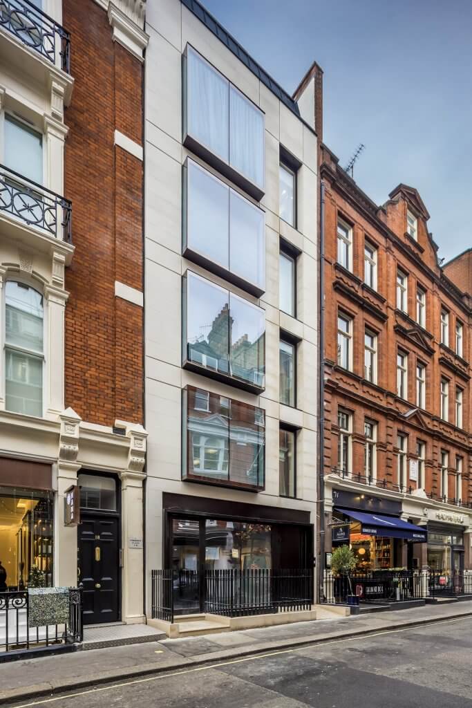 The building is within the Mayfair Conservation Area and the works have significantly improved the external appearance of the building, with a new high quality façade constructed in Portland Stone and slender aluminium powder coated windows to replace the rather bulky existing projecting bay.